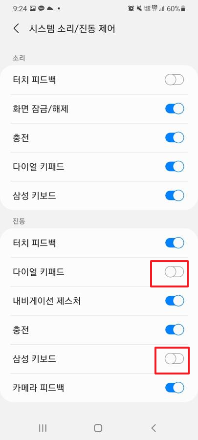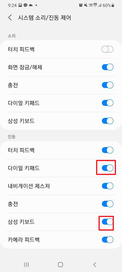 이와 같은 상태로 적용하시면, 키패드를 입력할 경우 진동이 나타나지 않습니다.