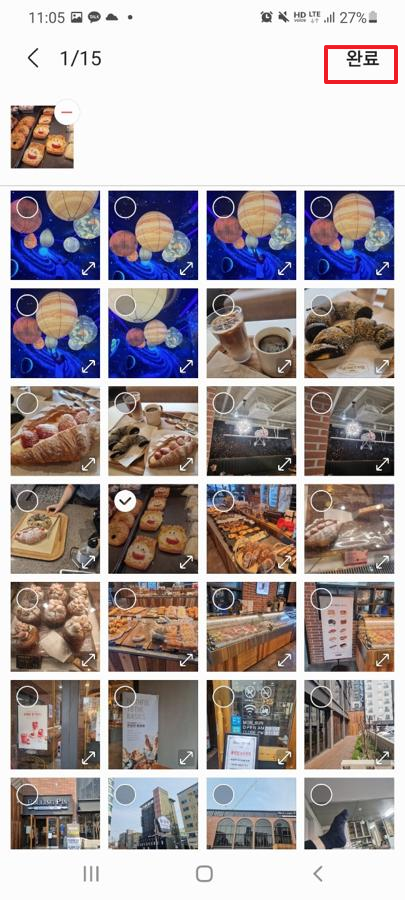 그럼 다음의 사진에서 원하는 사진을 선택하고 나서, 상단 우측에 있는 [완료] 부분을 터치해주시길 바랍니다. 그럼 여기에서 우측과 같이 배경화면으로 설정에서 홈화면, 잠금화면을 각각 위의 과정을 통해서 각각 선택할 수 있습니다. 저의 경우 귀차니즘에 잠금화면과 홈화면을 터치해주겠습니다.