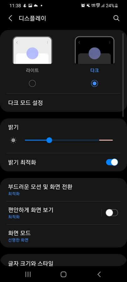 설정 - 디스플레이 - 다크 (모드) 선택