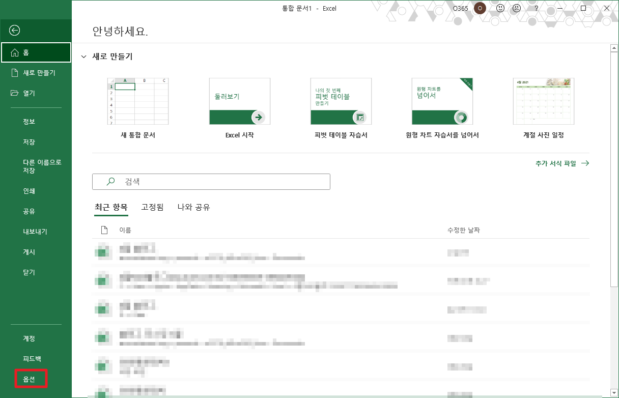 그런 후에 보이는 바와 같이 좌측 하단에 있는 [옵션]부분을 클릭하여 주시길 바랍니다.