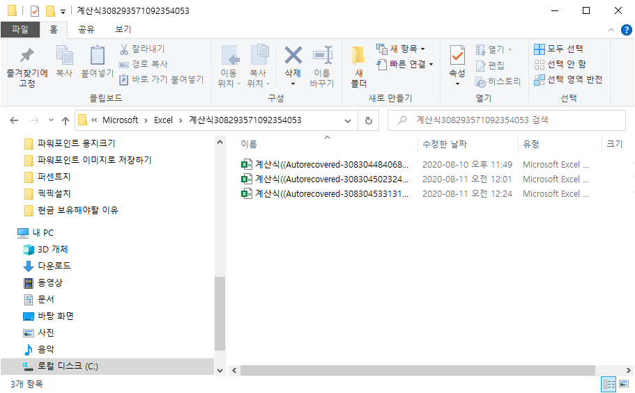 엑셀[Excel] 임시저장된 파일 확인하기 본문