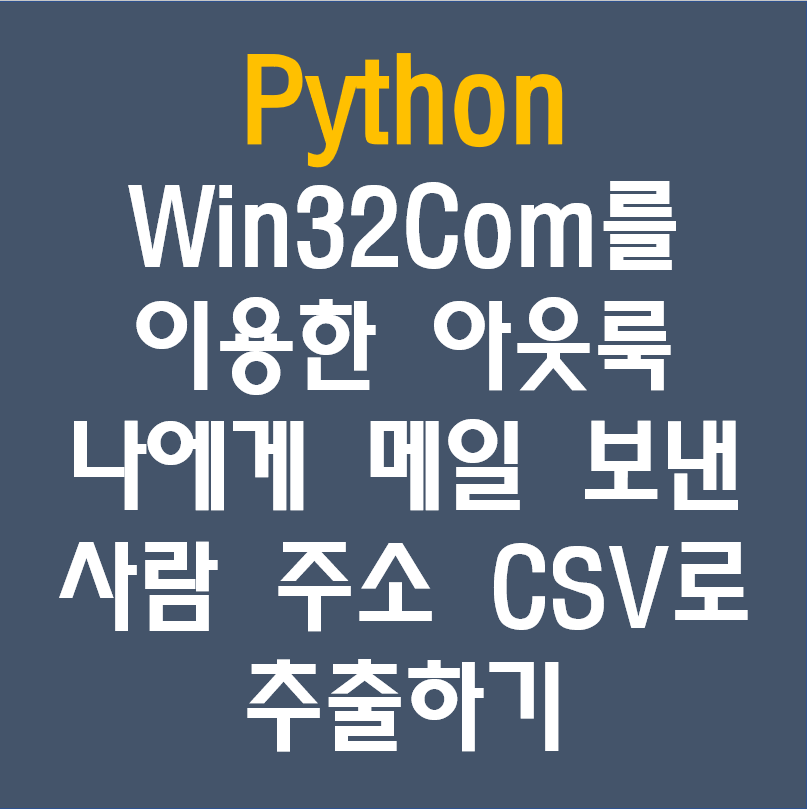 파이썬 [Python] win32com 이용하여, 아웃룩(Outlook)나에게 메일 보낸 사람 주소 출력하기 이번 포스팅은 나에게 메일을 보내는 사람에 대한 정보를 저장하기 위한 방법에 대해서 포스팅을 해보고