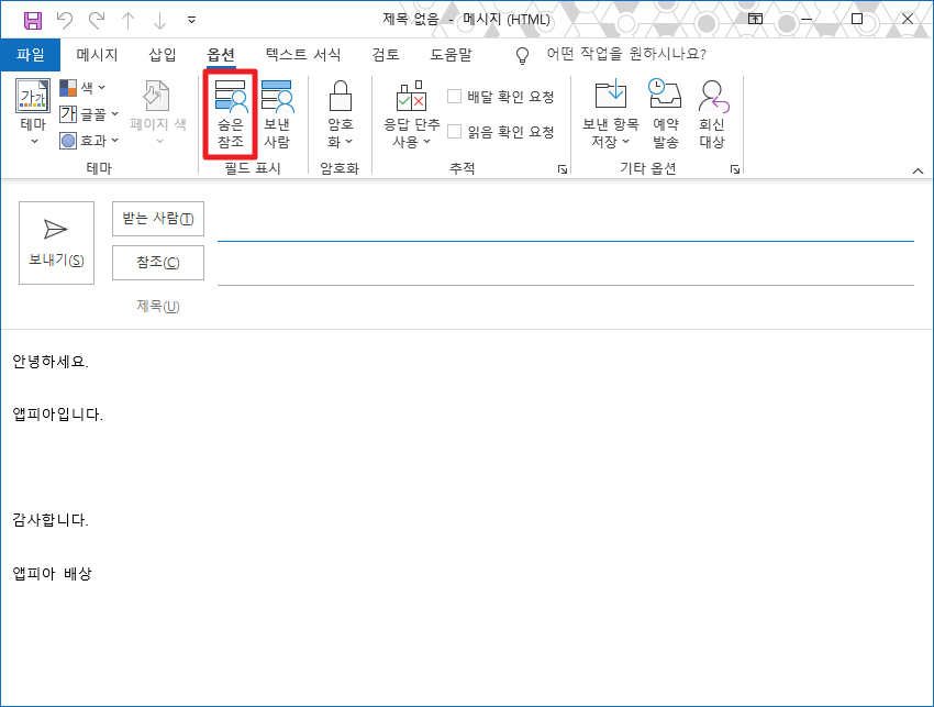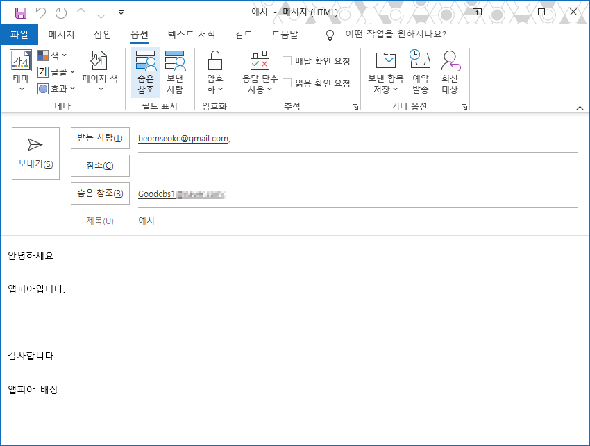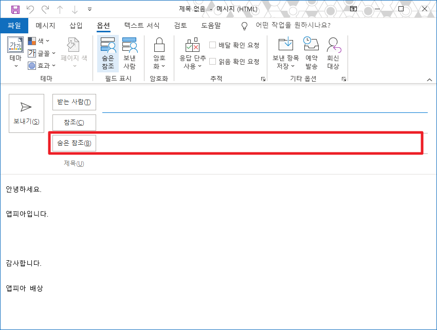 아웃룩[Outlook 365] 메일 보낼 때, 숨은 참조 사용하기 본문