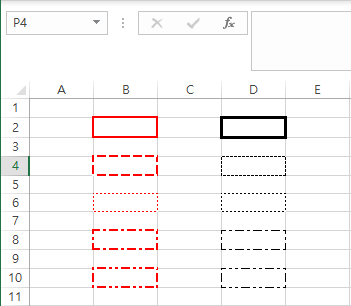 sheet.Range("D4").BorderAround(ColorIndex = 1,Weight = 4,LineStyle = 2)