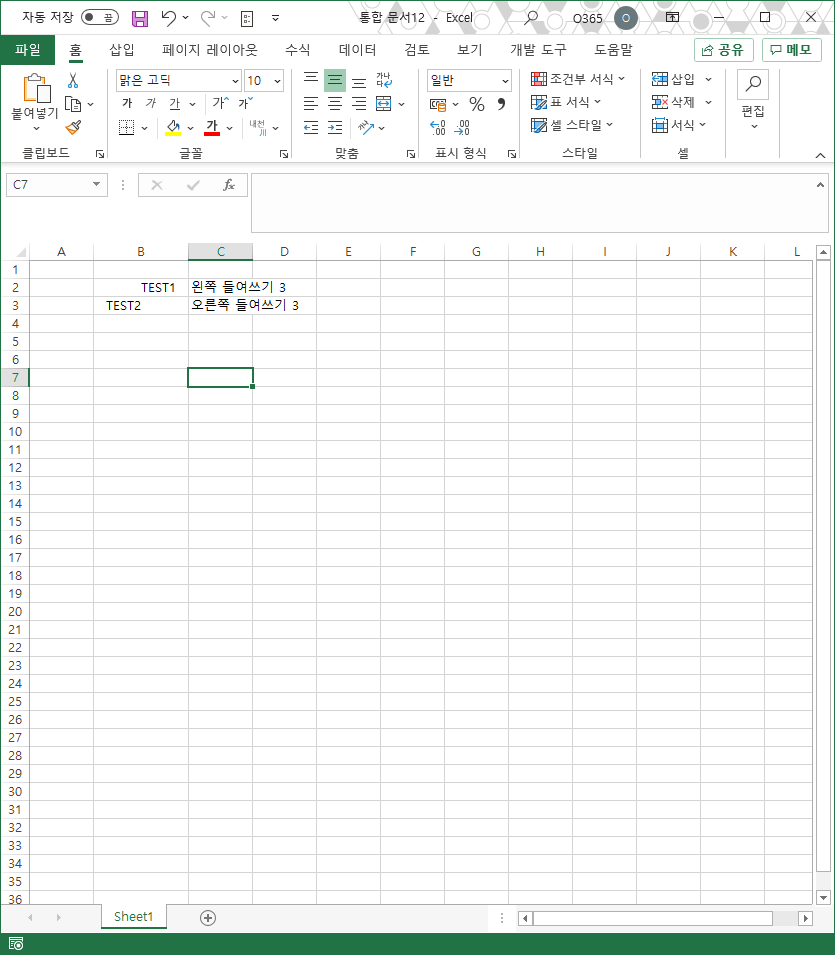 단, 오른쪽으로 들여쓰기를 적용할 경우, 정렬 자체가 오른쪽 정렬로 변경이 됩니다. 이점을 참고하시길 바랍니다.