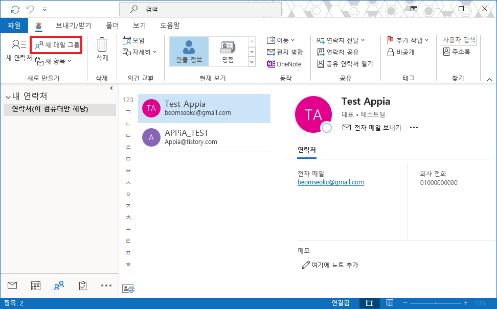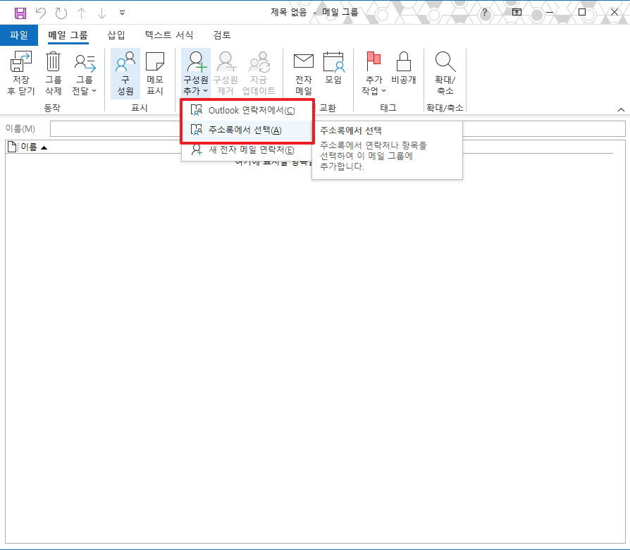 아웃룩[Outlook 365] 주소록 연락처 그룹, 새 메일 그룹 만들기 본문