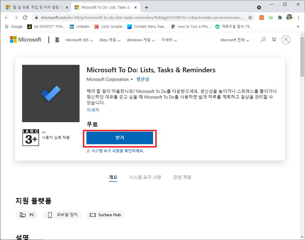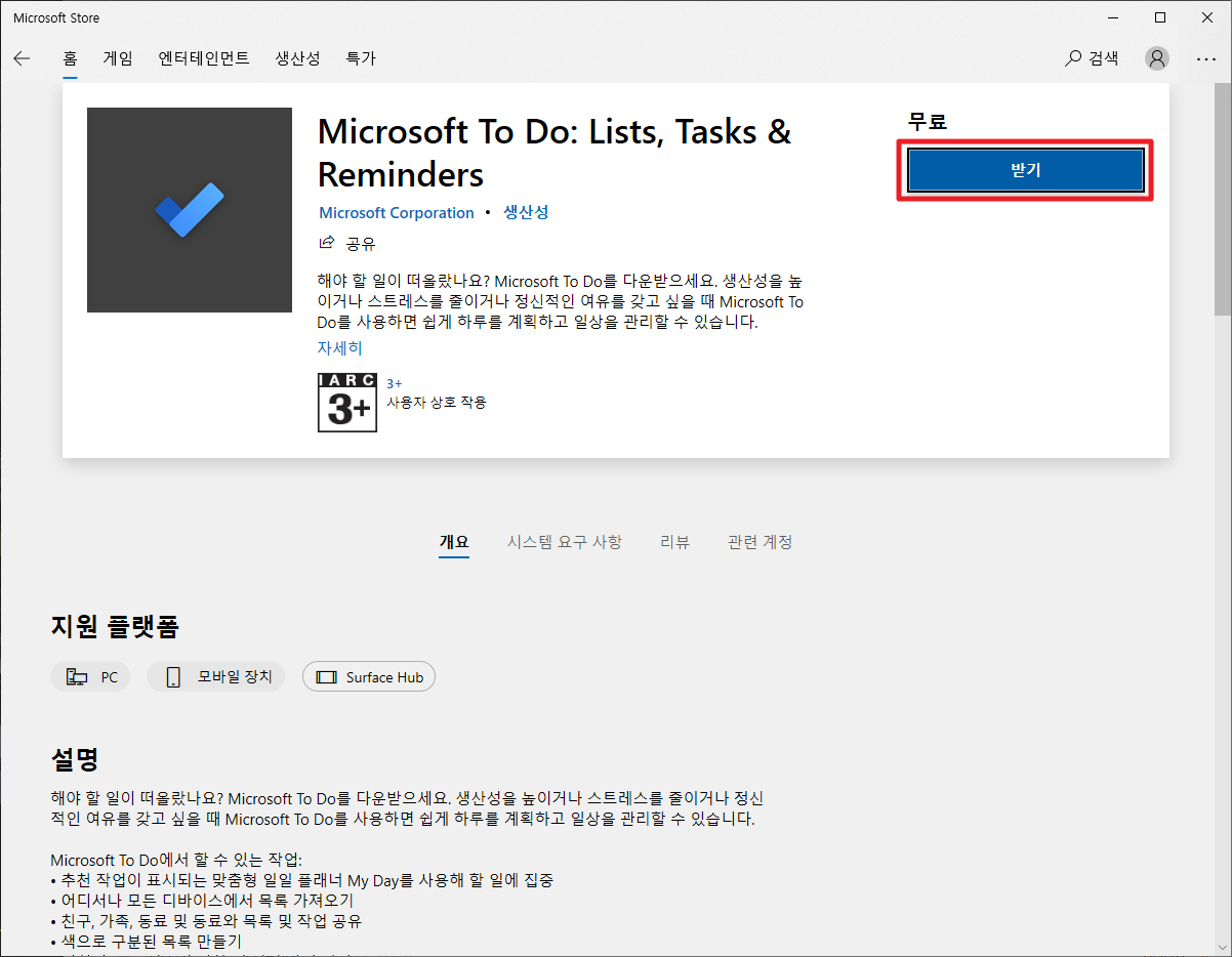 이와 같은 방법으로 마이크로소프트(Microsoft) To Do을 설치할 수 있습니다.