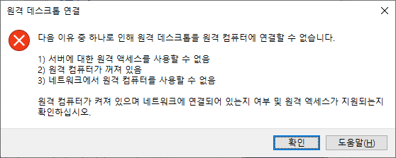 종종, 원격 접속을 시도할려고 할 때, 네트워크 등에 문제가 없음에도 다음과 같은 메시지를 본적이 있습니다.