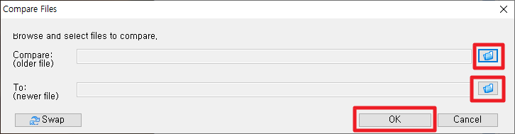 그럼 다음과 같은 다이얼로그가 나타날 것입니다. 이 때, 비교할 파일들을 선택해주시길 바랍니다.
