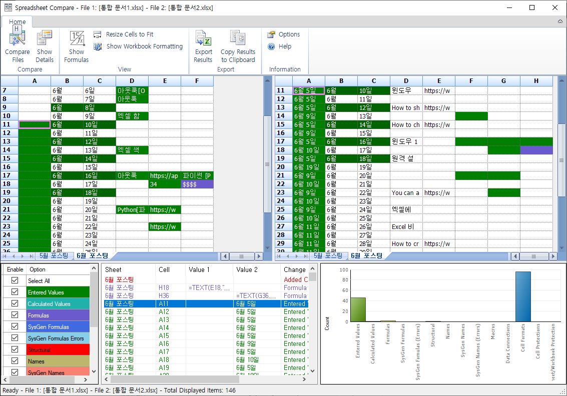 [윈도우10 Windows10] 엑셀 파일 비교 툴 - SpreadSheet compare 본문