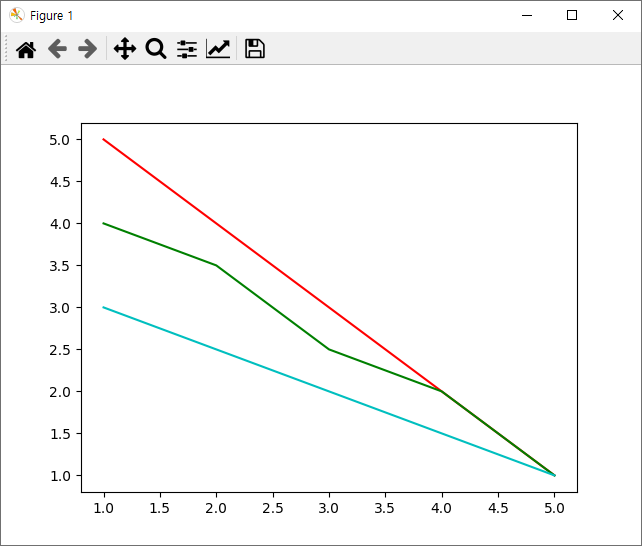 물론, 여러개의 선이 있으므로, 각 부분에 대해서 선의 색깔을 변경하였습니다. 이 부분을 바탕으로 위의 코드를 실행하면 다음과 같은 결과가 나타납니다.
