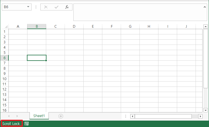 위에서 설정하셨다면, 다음과 같이 방향키로 셀이동이 안될 경우 Scroll Lock이라는 부분이 엑셀 화면 하단에 표시가 될 것입니다.