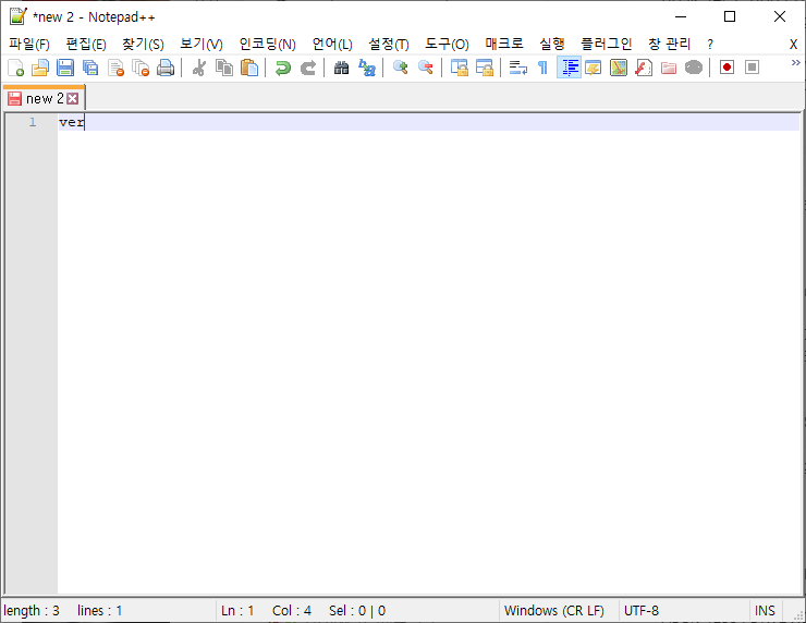 노트패드의 경우 무료툴이니, 위의 링크를 바탕으로 필요하신 분들은 설치해주시길 바랍니다. 먼저, 노트패드를 실행하시면 다음과 같은 화면이 나타날 것입니다.