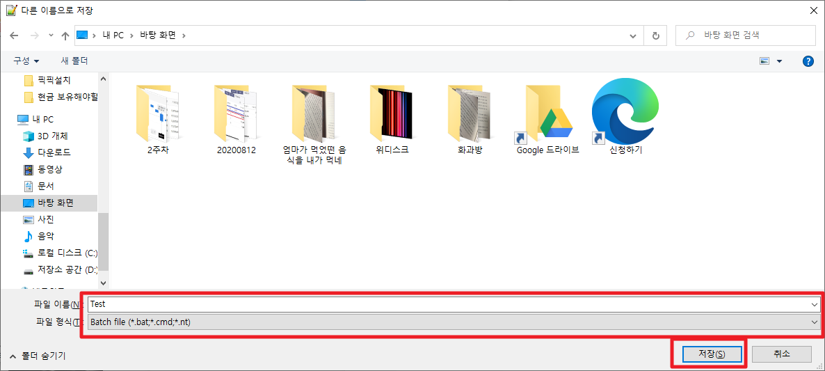Appia 2021. 6. 28. 06:17[윈도우10, windows10] 배치 스크립트 (Batch script)/ BAT파일 만들기
