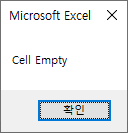이와 같은 방식으로 셀 값이 비웠으면 다음과 같이 메시지 박스가 나타납니다.