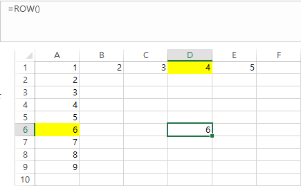 위에서 보이는 바와 같이 $D$6가 반환됩니다. 이 부분에 대해서는 절대값이 반환됩니다. 이와 같은 방식으로 ROW, COLUMN함수를 통해서 셀의 COLUMN, ROW에 대해서 수로 반환 받을 수 있고, 그 부분을 이용하여 셀의 위치를 확인할 수 있습니다.