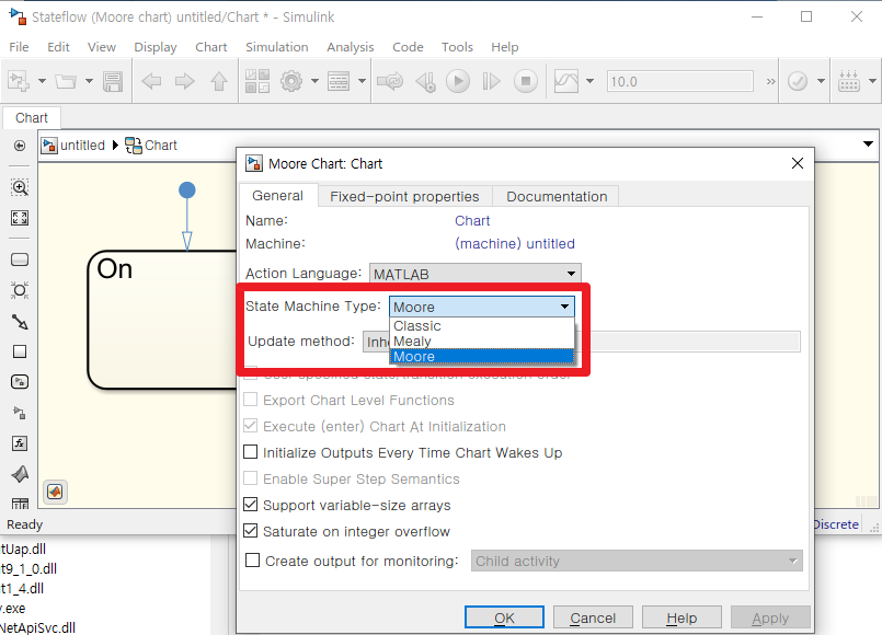 [Stateflow] State안의 Flowchart, Mealy Chart, Moore Chart 본문