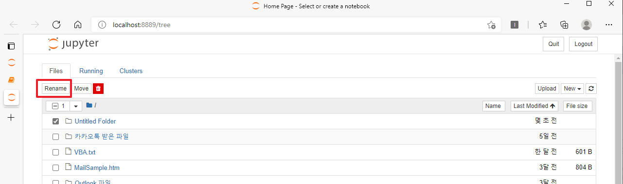 주피터 노트북[Jupyter Notebook]폴더, 파일 새로 생성하기. 이름 변경하기 본문