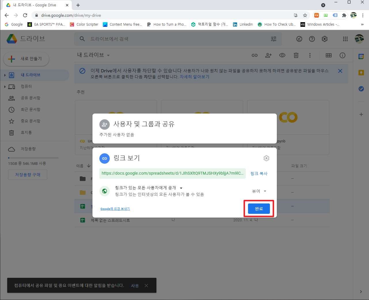 [윈도우10 Windows10] 구글 로그인 없이 접속가능하게구글 드라이브 파일 링크 생성하기