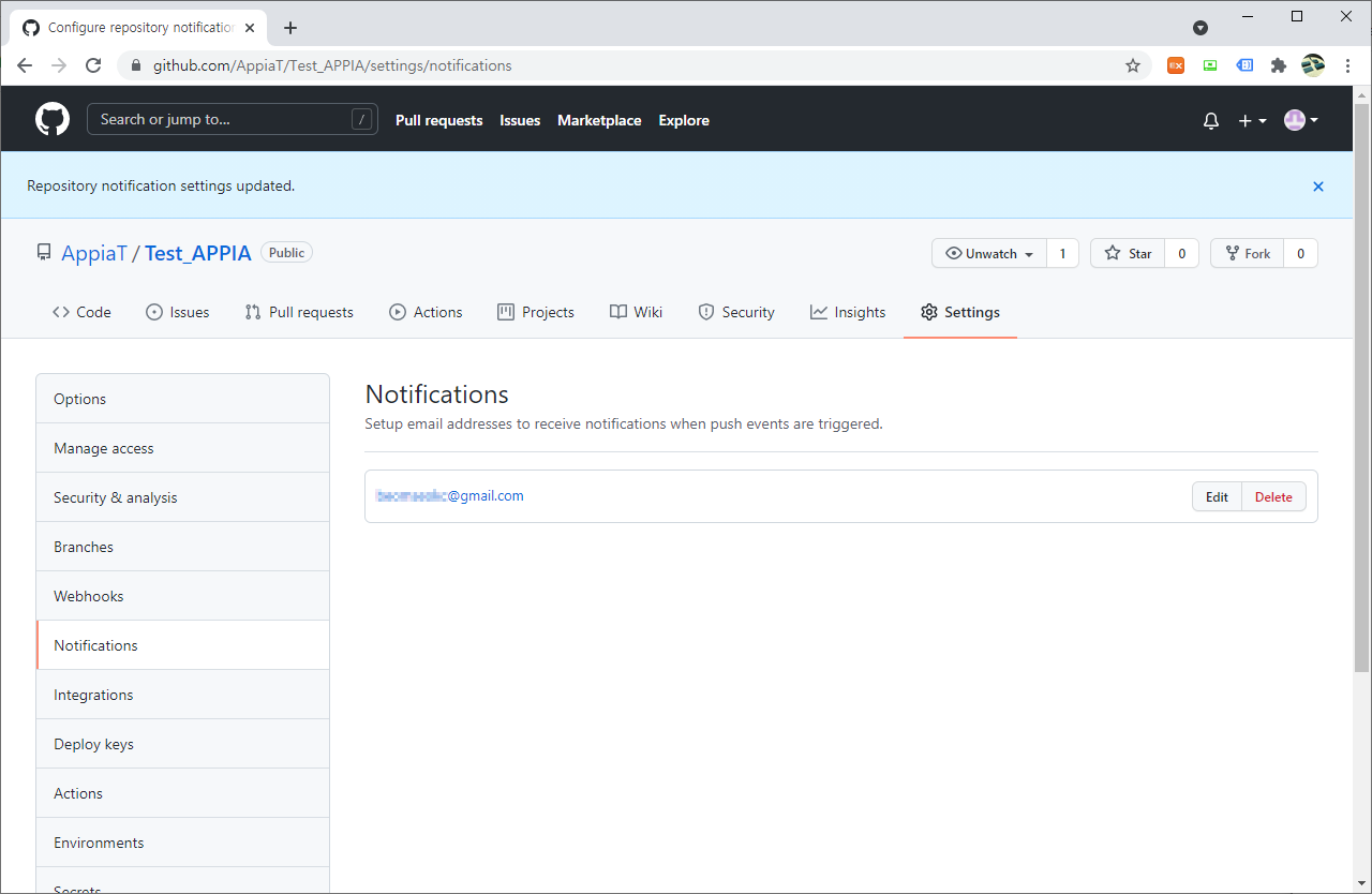 회사에서는 형상 관리 툴을 사용하시면 이벤트등이 발생할 경우 그에 맞게 메일로 관련된 알람등을 수신할 수 있었습니다. 그런 경우 대부분 회사에서 특정 분들이 고생하셔서 관련된 설정등을 작업을 하게 해줍니다. 하지만 GitHub의 경우 그런 수고를 대신 해주는 사람이 없습니다. 그래서 이번 포스팅에서는 이와 같이 메일로 알람등을 공지해주는 설정하는 방법에 대해서 포스팅을 해보고자 합니다.