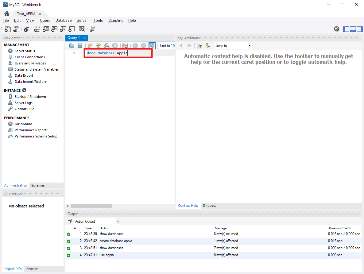 데이터 베이스(Database) 삭제하기