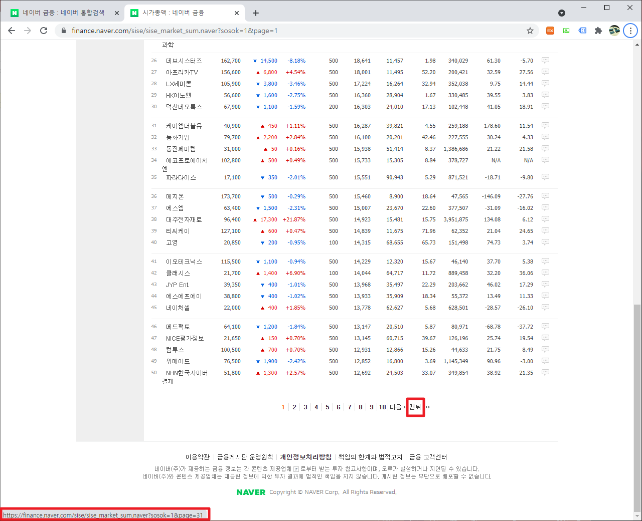 baseaddress = 'https://finance.naver.com/sise/sise_market_sum.naver?sosok=1&page='