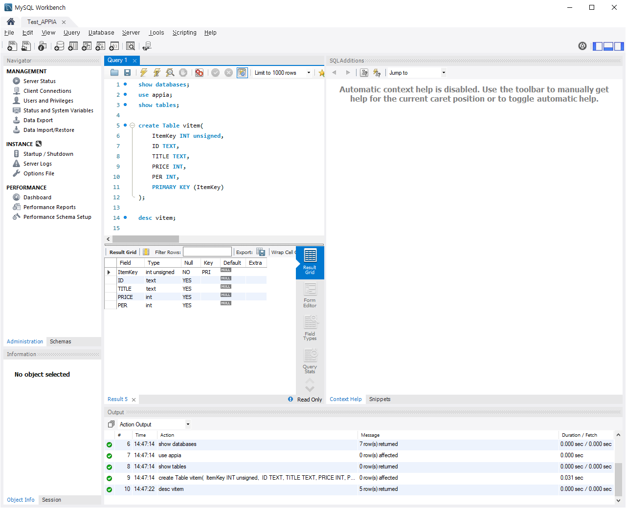 MySql 테이블 생성, 삭제, 확인하기