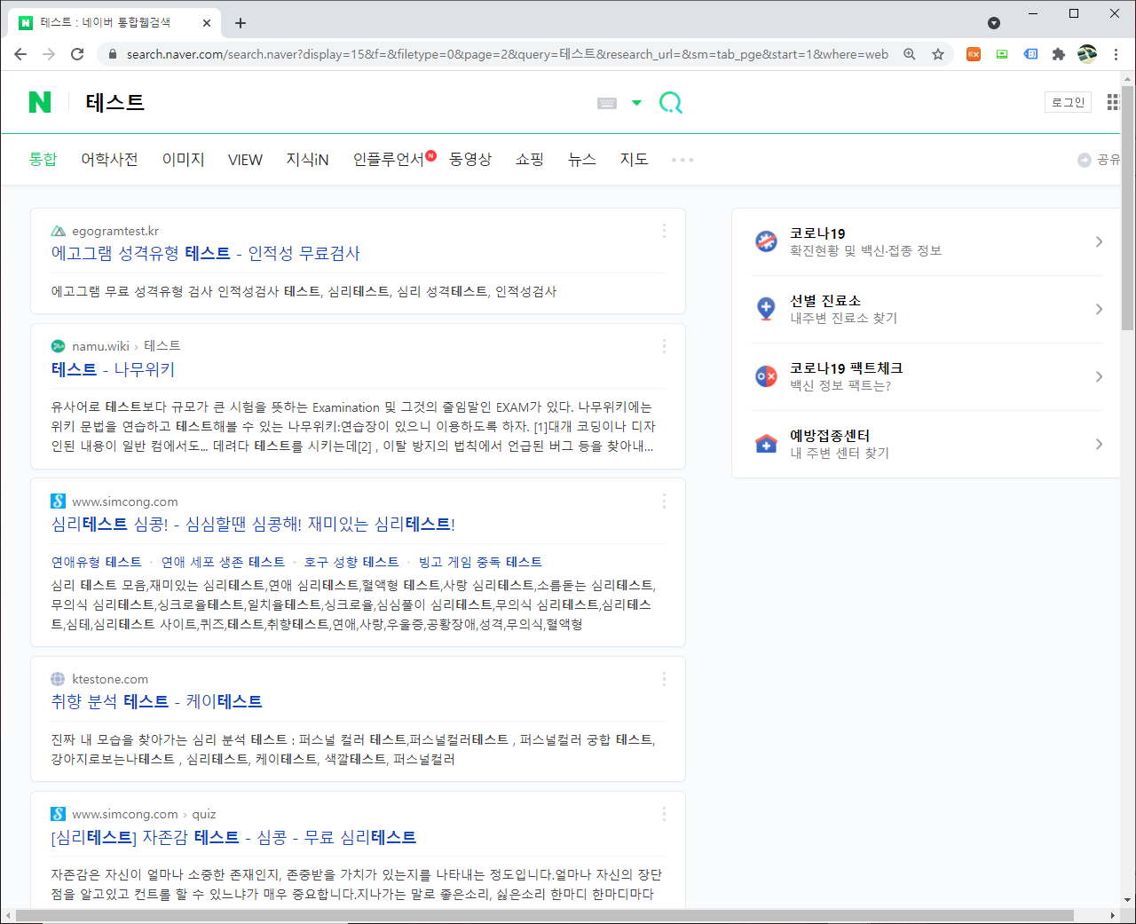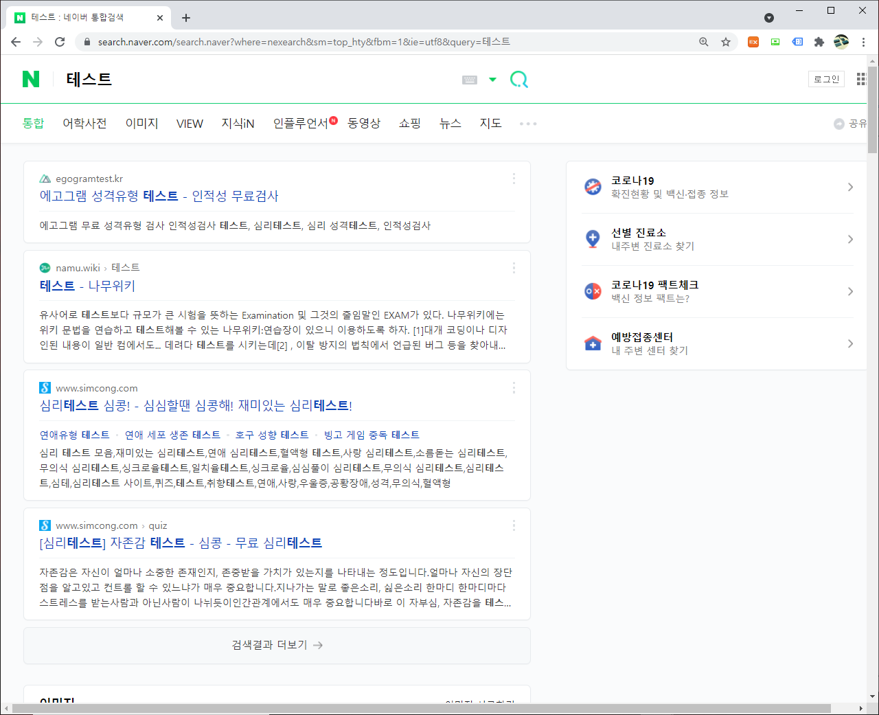 이번 포스팅은 웹 크롤링을 하면서, 한번쯤 해볼만한 네이버 검색 결과에 대해서 추출하는 방법에 대해서 간단히 이야기를 해볼까 합니다. 먼저, "테스트"라는 단어를 바탕으로 진행을 해볼까 합니다. 먼저, 검색에 대한 결과를 활용하기 위해서, 검색이 입력되어 있을 경우, 관련해서 웹페이지 주소의 변화를 살펴봤습니다.