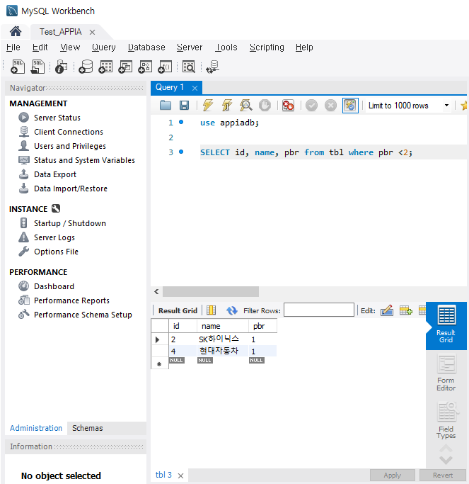 위의 부분을 Query하면 다음과 같은 결과가 나타납니다.