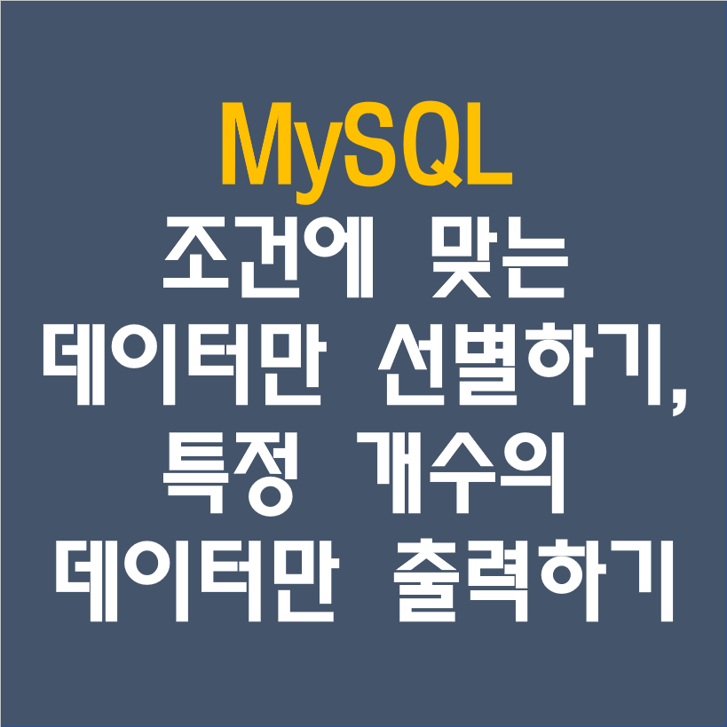앞선 포스팅에서 MySQL 값을 검색하는 방법에 대해서 간단히 살펴봤습니다. 이번 포스팅은 앞선 포스팅에 앞서서, 약간의 조건들을 추가하여 검색할 수 있는 방법과 검색된 결과에서 특정 수량만큼만 출력하는 방법에 대해서 살펴보도록 하겠습니다.