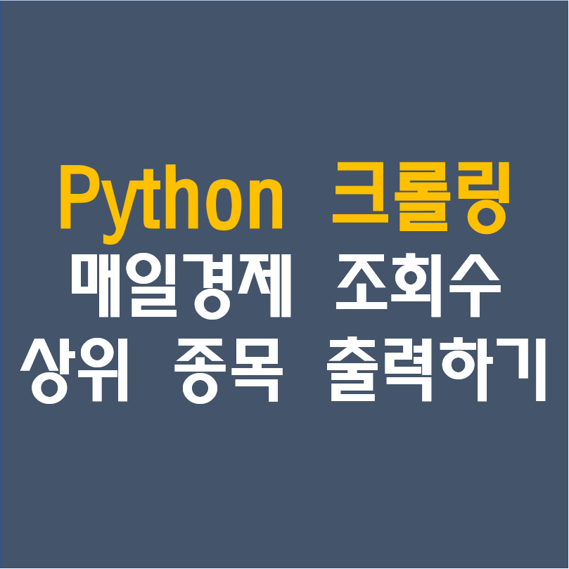 이번 포스팅은 [파이썬 크롤링]매경, 매일경제 조회수 상위종목 출력하기라는 주제로 간단히 포스팅을 해봤습니다. 혹 궁금하신 점이나 문의 사항이 있으시면 언제든지 댓글 및 방명록에 글 남겨주시길 바랍니다. 혹 궁금하신 점이나 문의 사항이 있으시면 언제든지 댓글 및 방명록에 글 남겨주시길 바랍니다.