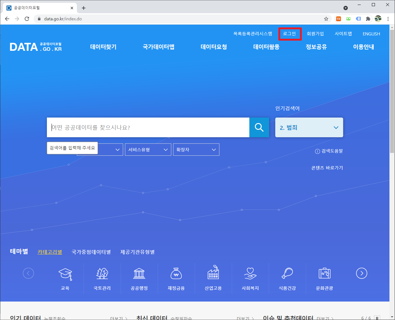 만약 위의 화면에서 현재 가입이 되어 있지 않다면, 다음 포스팅을 활용하여 공공데이터 포털에 가입해주시길 바랍니다.