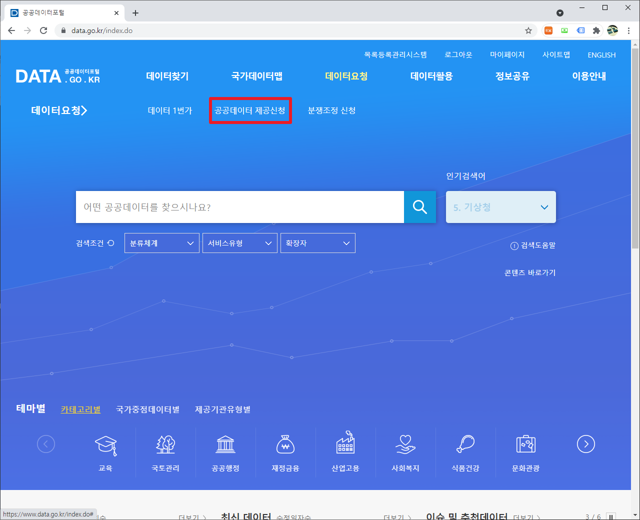 공공 데이터 포털 데이터 제공 요청하기 본문