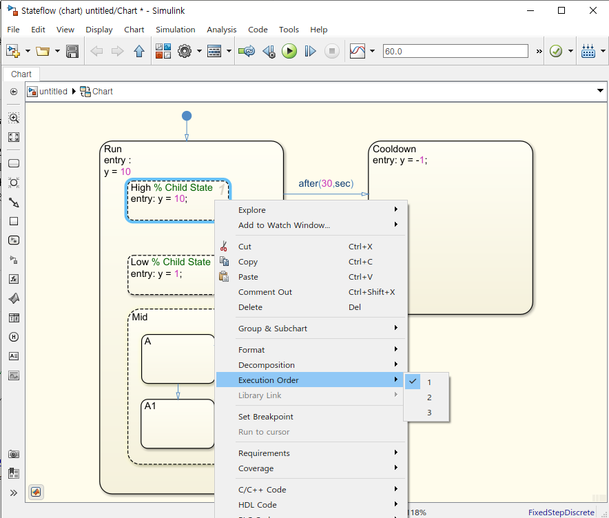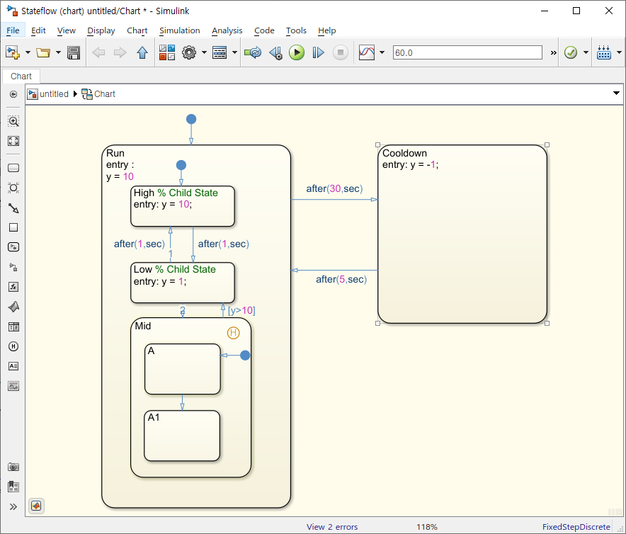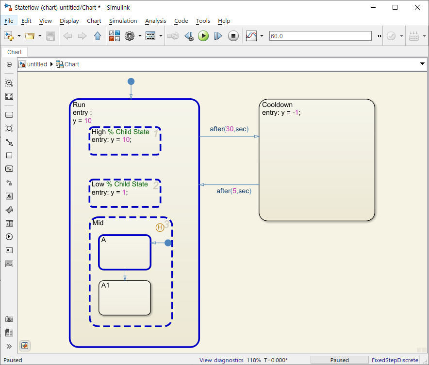 [Stateflow] Chart의 Level에 따른 데이터 관리, Histroy Junction, Parallel state 본문