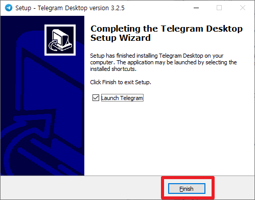 그런 후 설치가 완료되면 다음과 같은 화면이 나타납니다. 저의 경우 설치 완려와 함께 텔레그램(Telegram)을 실행할 예정입니다.