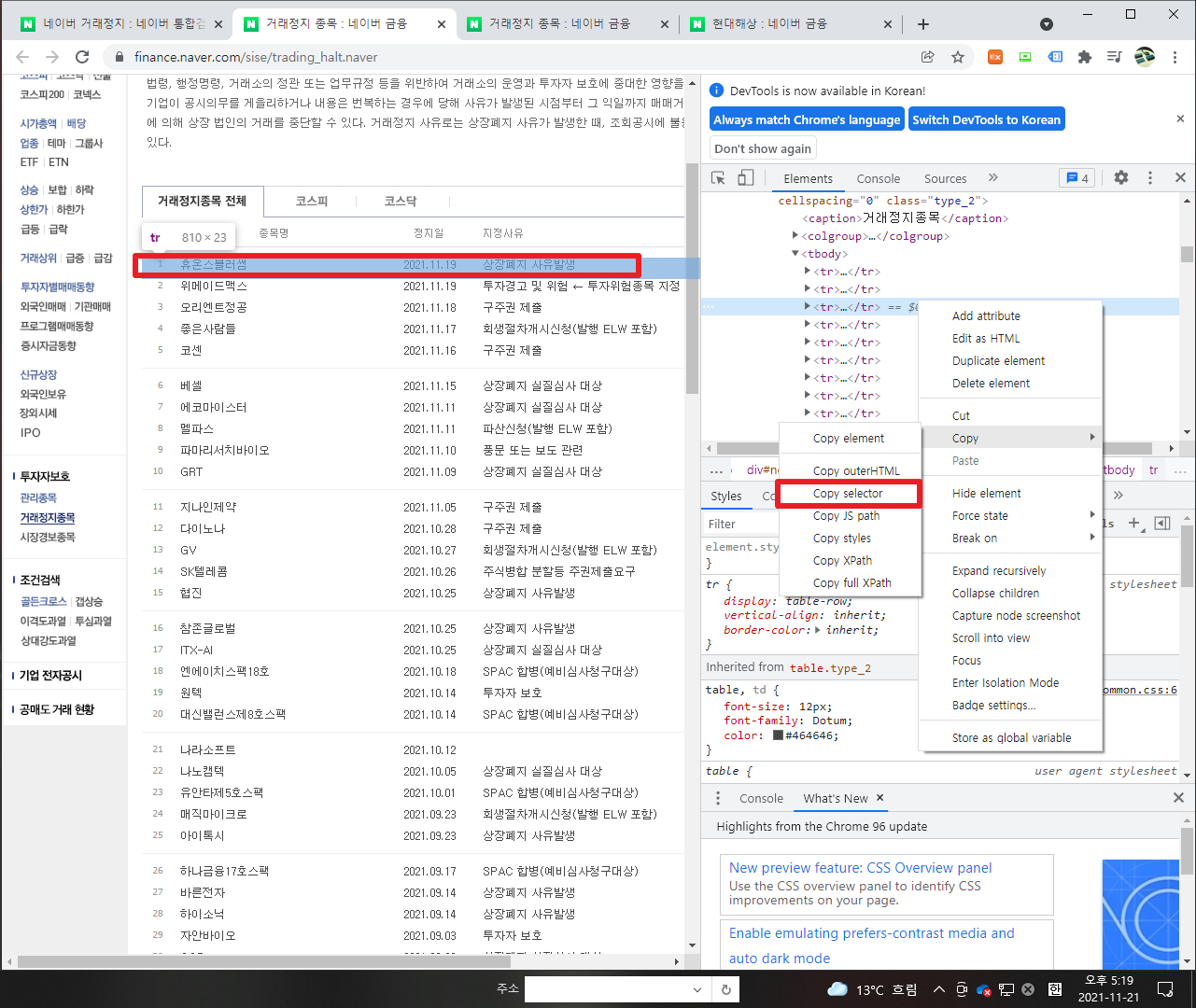 주식시장을 확인하다보면, 생각보다 거래 정지가 되어 있는 항목들을 많이 확인할 수 있습니다. 그래서 이번 포스팅에서는 거래 정지 항목이 무엇인지에 대해서 크롤링해보는 포스팅을 해보고자 합니다.