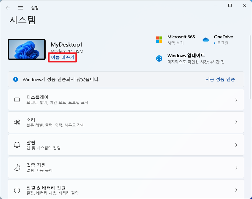 [Windows11] 윈도우11에서 컴퓨터 이름 바꾸기