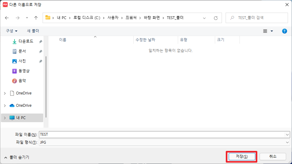여기에서 저장하고자 하는 폴더를 선택하신 후에 [저장]부분을 클릭하여 주시길 바랍니다.