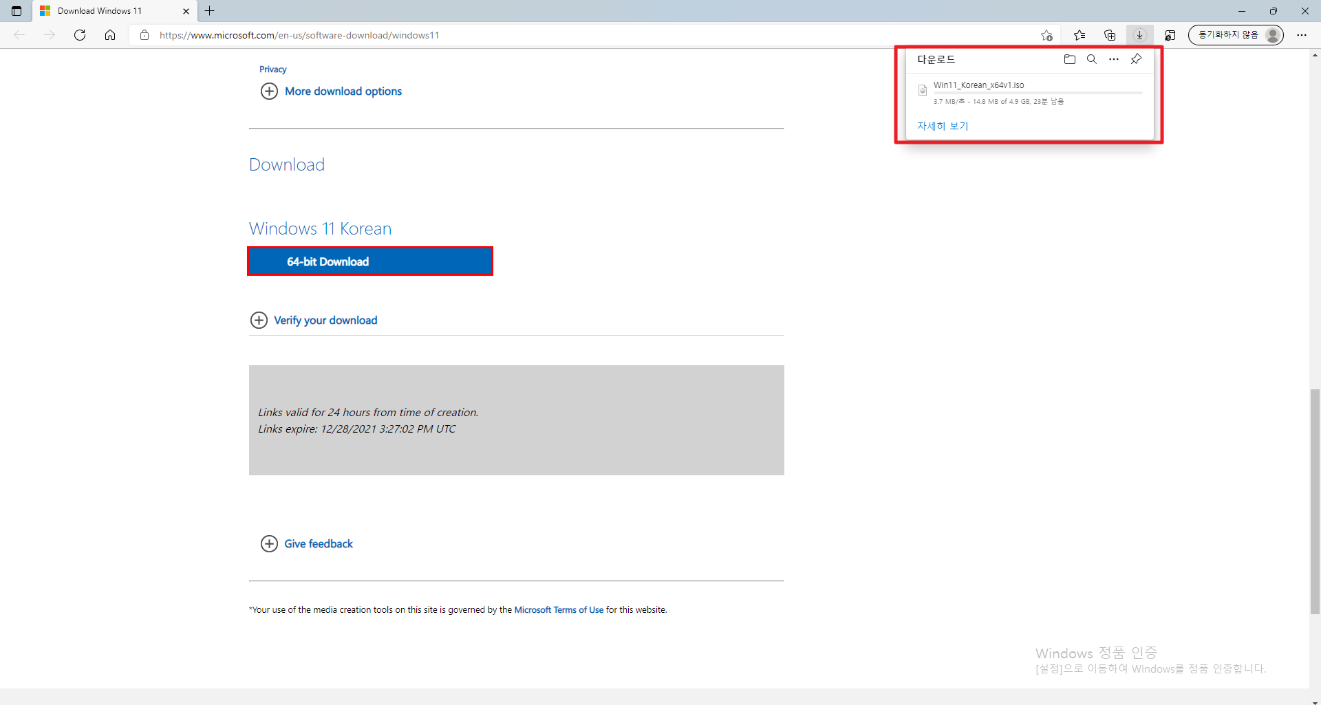 이와 같은 방법으로 윈도우11이미지를 다운로드 하실수 있습니다.
