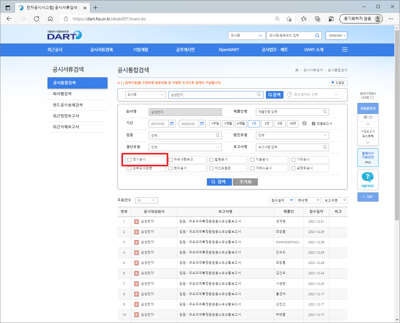 전자 공시 시스템(Dart) 사이트에서 과거 사업 보고서 확인하기 본문