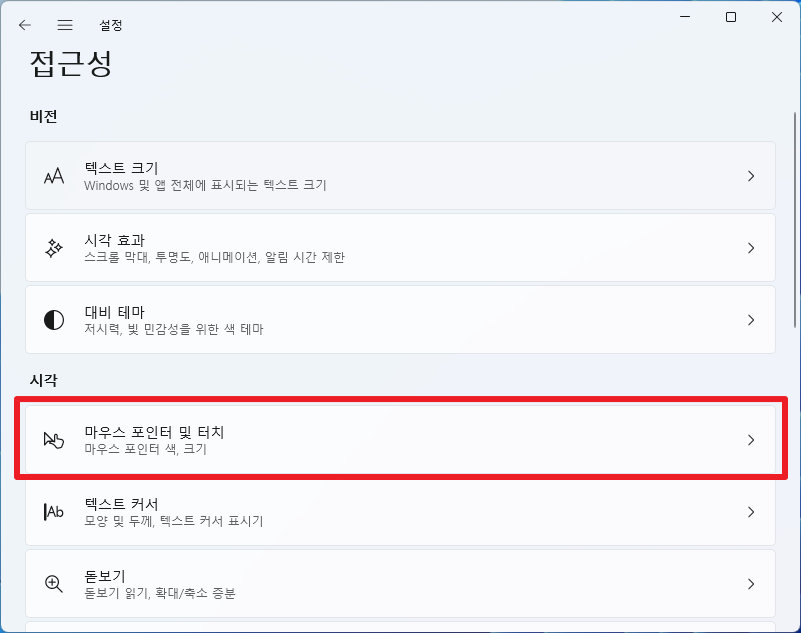 [Windows11] 윈도우11 마우스 커서 크기와 색깔 바꾸기 본문