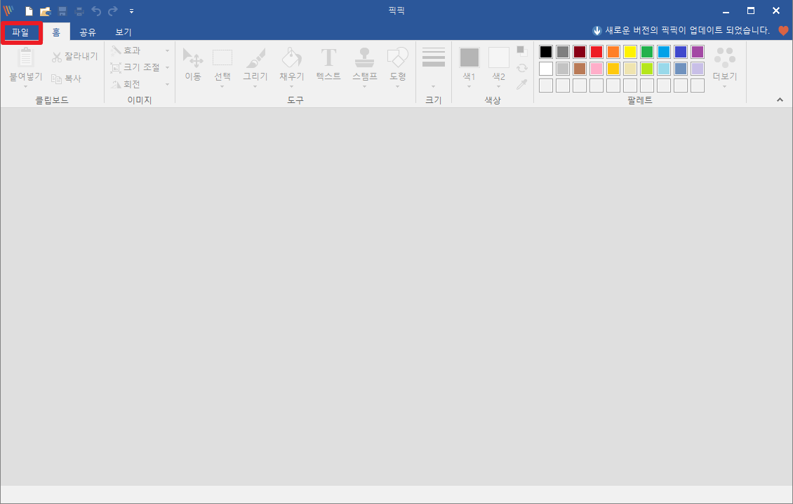 먼저 픽픽(PicPick)를 이용하시면 다음과 같이 실행 되거나 아니면, 설정 메뉴로 되어 있는 경우가 많습니다. 다음과 같이 시작될 경우에는 [파일]부분을 클릭하여 메뉴들이 보이는 화면으로 이동해 주시길 바랍니다.