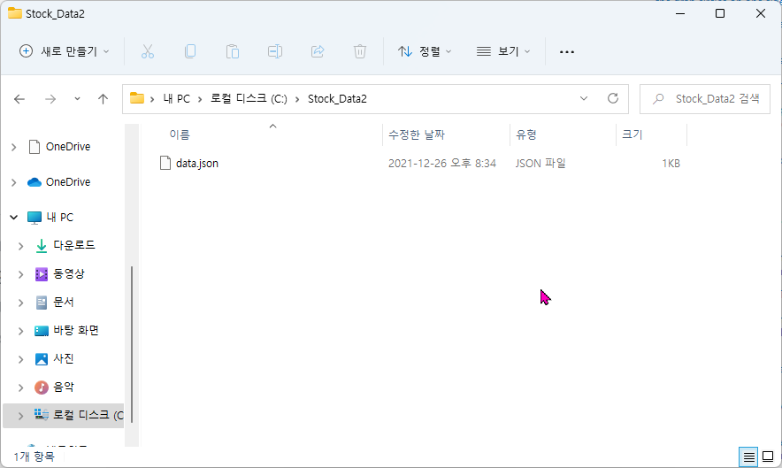 먼저 다음에 있는 그림에서 보이는 data.json파일을 stock_data1 폴더에서 stock_data2폴더로 옮기는 작업을 진행해보도록 하겠습니다.