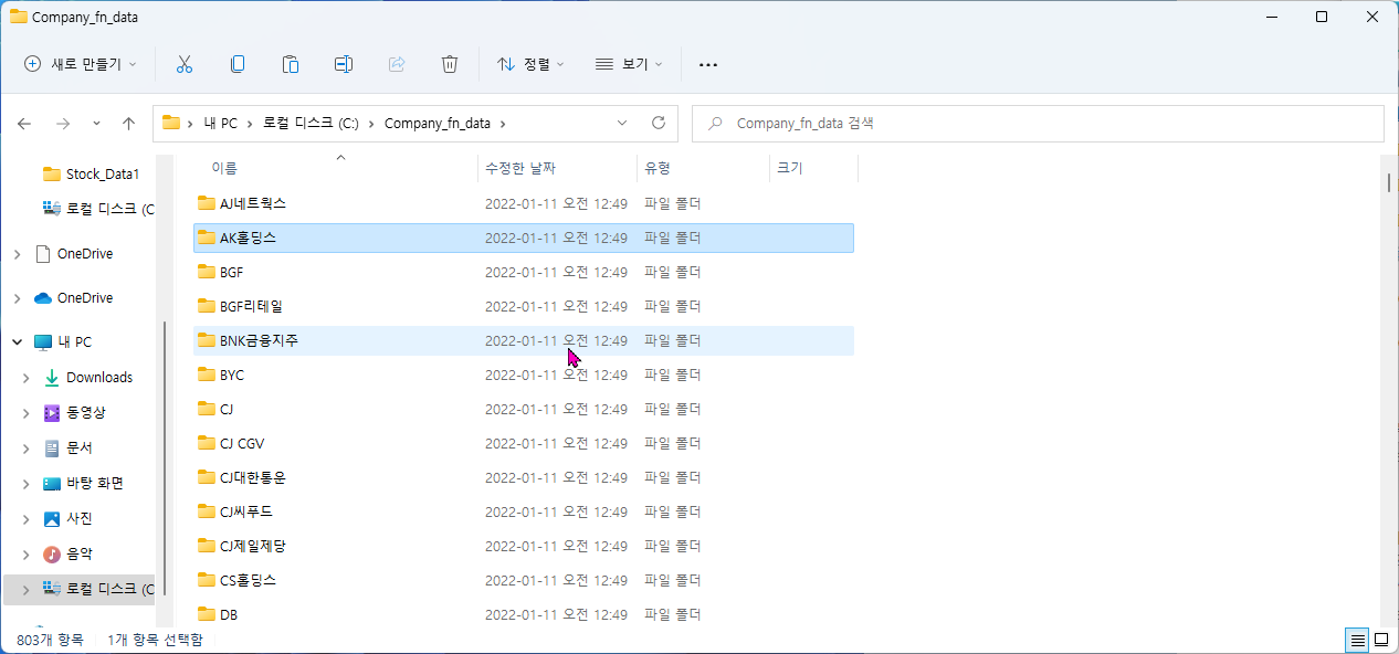 이 부분들을 다운과 같이 [이름] 부분을 바탕으로 이름에 해당되는 부분을 바탕으로 폴더를 생성하도록 하겠습니다.