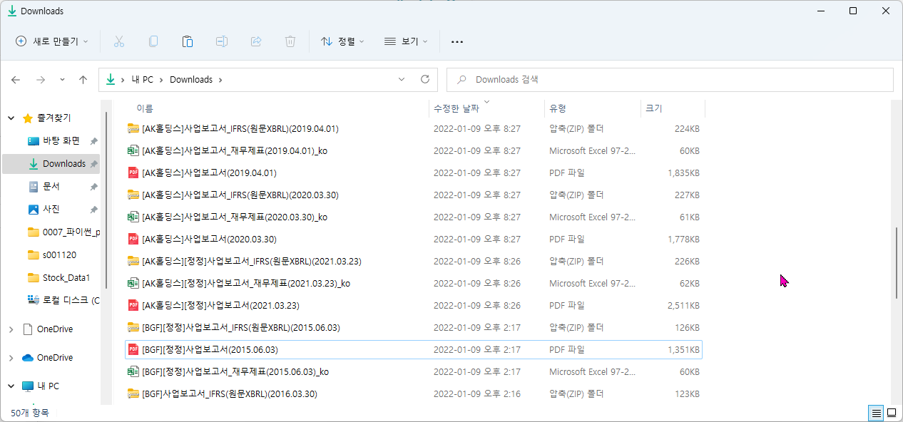 먼저, 이전 포스팅에서 노가다 작업으로 몇가지 파일들을 다운로드를 받았습니다. 이런 파일들이 쌓이다 보니, 실제로 정리할 여력이 생기지 않았습니다. 그래서 이전에 포스팅했던 부분들을 응용하여 파일을 정리해야겠다는 생각을 하였습니다.