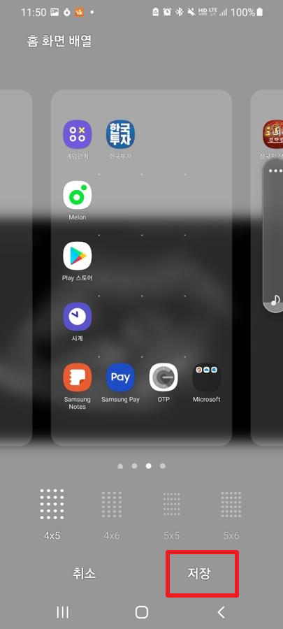 저의 경우에는 4*5 형태로 변경하기 위해서, 관련된 부분을 선택하도록 하겠습니다. 그런 후에 [저장]부분을 터치해주시길 바랍니다.