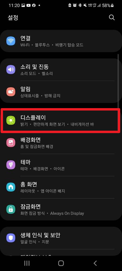 그런 후에 [디스플레이]부분을 터치해주시길 바랍니다.