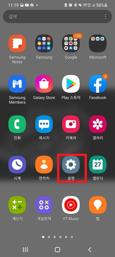 안드로이드(Android) 앱화면 배열 구성 변경하기 먼저, 앱화면에 각 실행 아이콘들이 놓여 있는 형태를 보면, 4*6, 5*5, 5*5 형태로 놓일 수 있습니다. 저의 경우에는 4*6의 구성으로 설정을 해놓고 사