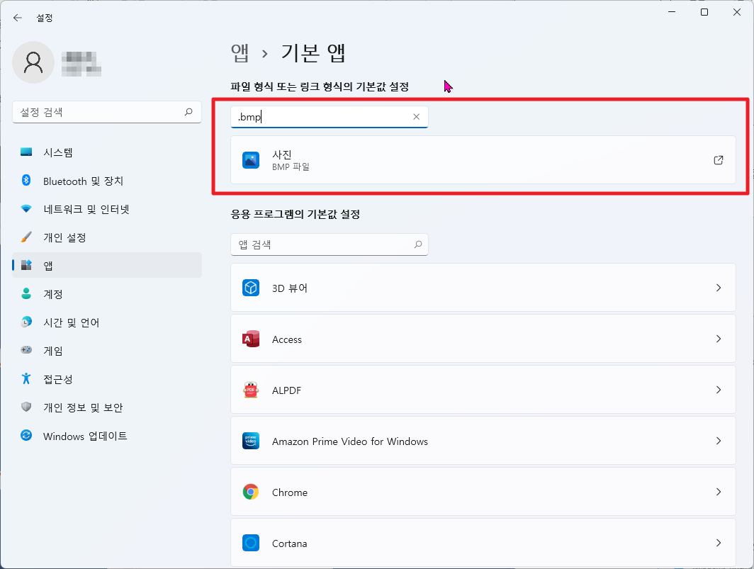 물론 다음과 같이 파일 확장자를 통해서 기본 앱이 등록된 부분을 확인할 수 도 있습니다.