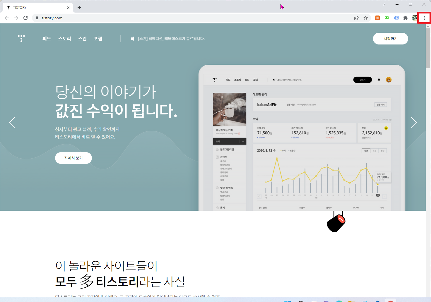 먼저, 크롬(Chrome)우측 상단에 더보기 부분을 클릭해주시길 바랍니다.